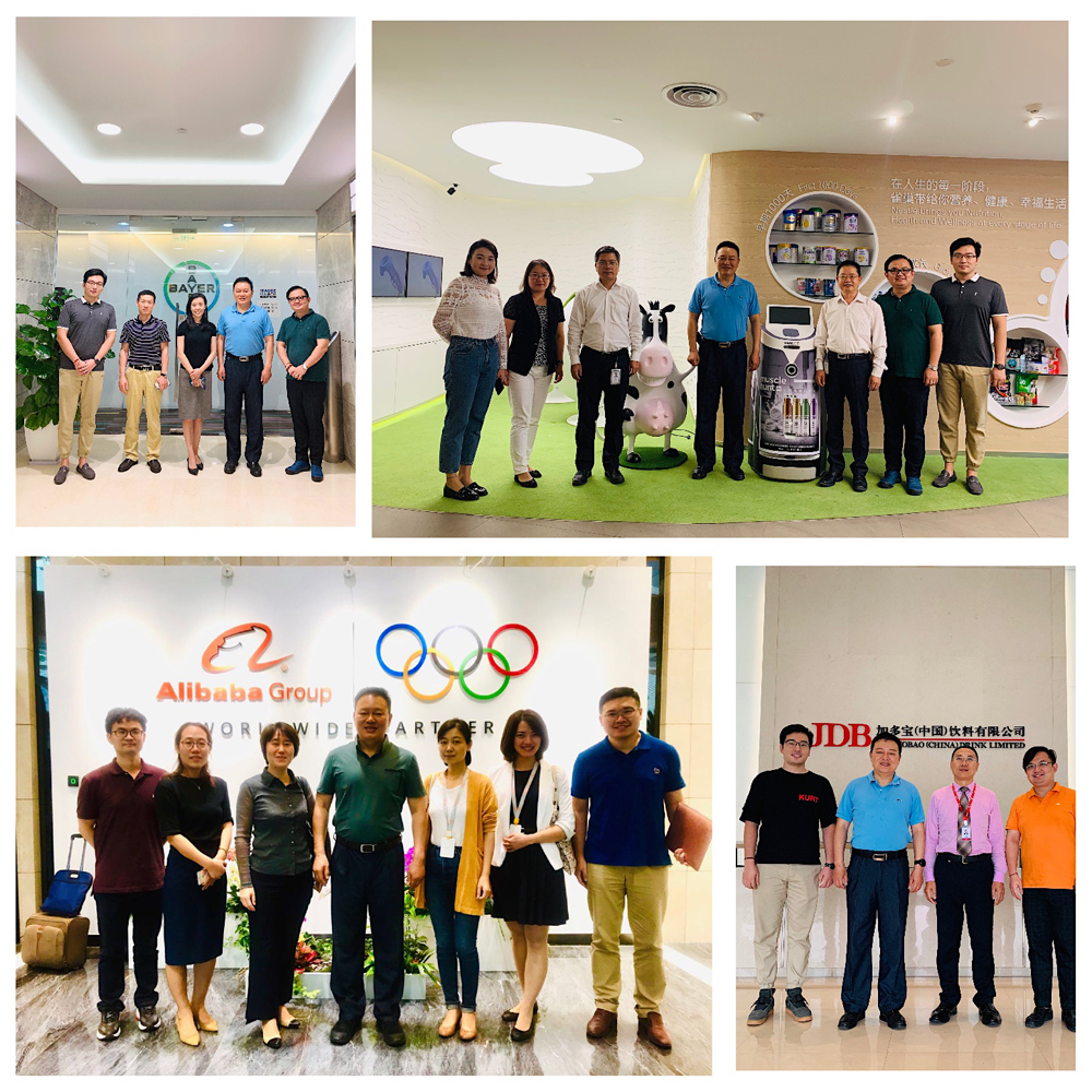 2019年10月上旬,科信中心主任包大躍攜副主任鐘凱、吳桐及部門負責人阮光鋒、趙建京、馬潤田,先后完成對雀巢、阿里巴巴、拜耳、圣元、加多寶、旺旺、光明、康師傅、可口可樂、百勝、百事、卡夫亨氏、惠氏、恒天然、嘉吉、凱愛瑞、星巴克、安利、維他、雅士利、健合、君樂寶、金沙河等,分布在北京、上海、廣東及河北等地區,40家國內外食品行業龍頭企業走訪工作。 企業走訪計劃已經堅持了四年,受到企業廣泛好評。部分合作意向將納入了科信中心2020年工作計劃。