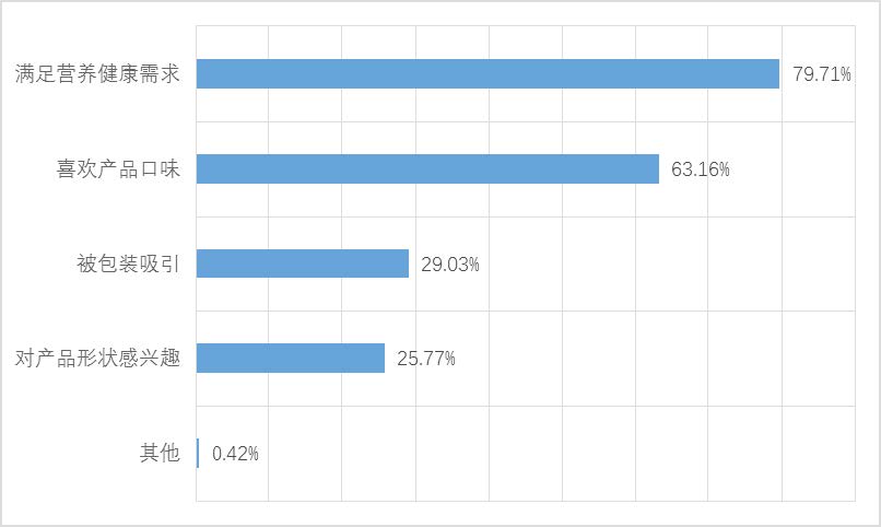 隨著國民對健康的關注度提升,針對特定人 群的食品很受歡迎,比如兒童、老人、孕婦等。七 成以上消費者認為標注適宜人群有利于自己合理 選購產品,其中滿足營養健康需求是最重要的考 量,其次是產品口味、包裝、外形的偏好。