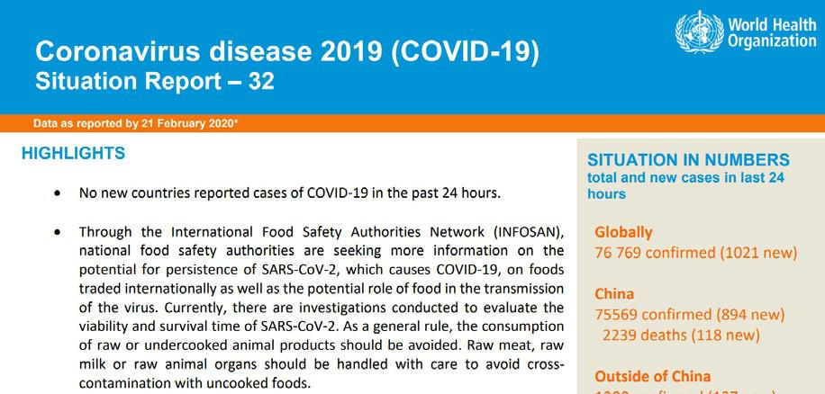 2 月 21 日,世界衛生組織發布一份文件,對 新冠病毒通過食品傳播的可能性給出了官方意見及 針對性的建議。這里將核心觀...