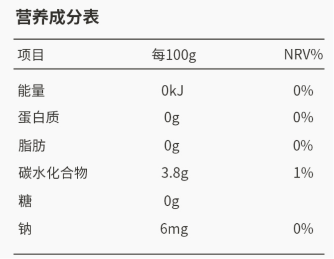 2. 看營養(yǎng)成分表。營養(yǎng)成分表會標(biāo)注每100毫升產(chǎn)品中碳水化合物的含量及能量情況。部分食品或飲料的營養(yǎng)成分表會單獨標(biāo)注“糖”的含量,這有助于消費者判斷所購買產(chǎn)品是否真正為“0糖”。