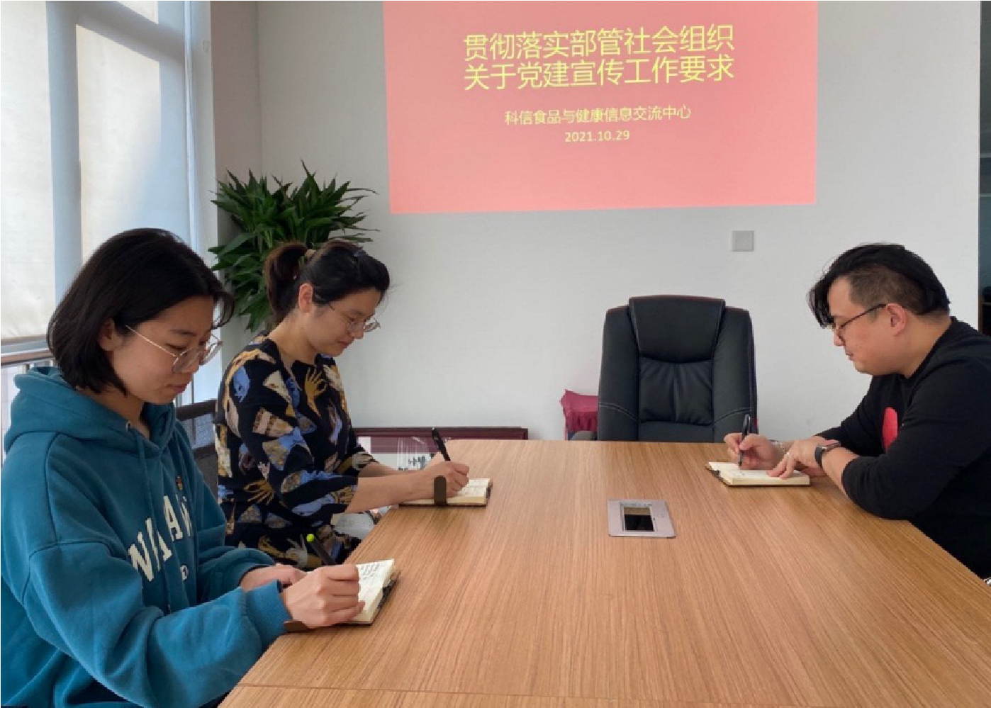 為進一步加強部管社會組織黨建工作宣傳員隊伍建設,提升黨建工作宣傳員的素質能力,促進部管社會組織黨建工作高質量發展,10月29日科信中心黨支部根據部管社會組織綜合黨委《黨建宣傳員工作管理辦法》相關規定,結合部管社會組織黨建工作宣傳員培訓班課程內容,組織全體黨員召開關于支部黨建宣傳工作要求的專題學習宣貫活動。本次活動由科信中心黨支部書記吳桐主持。