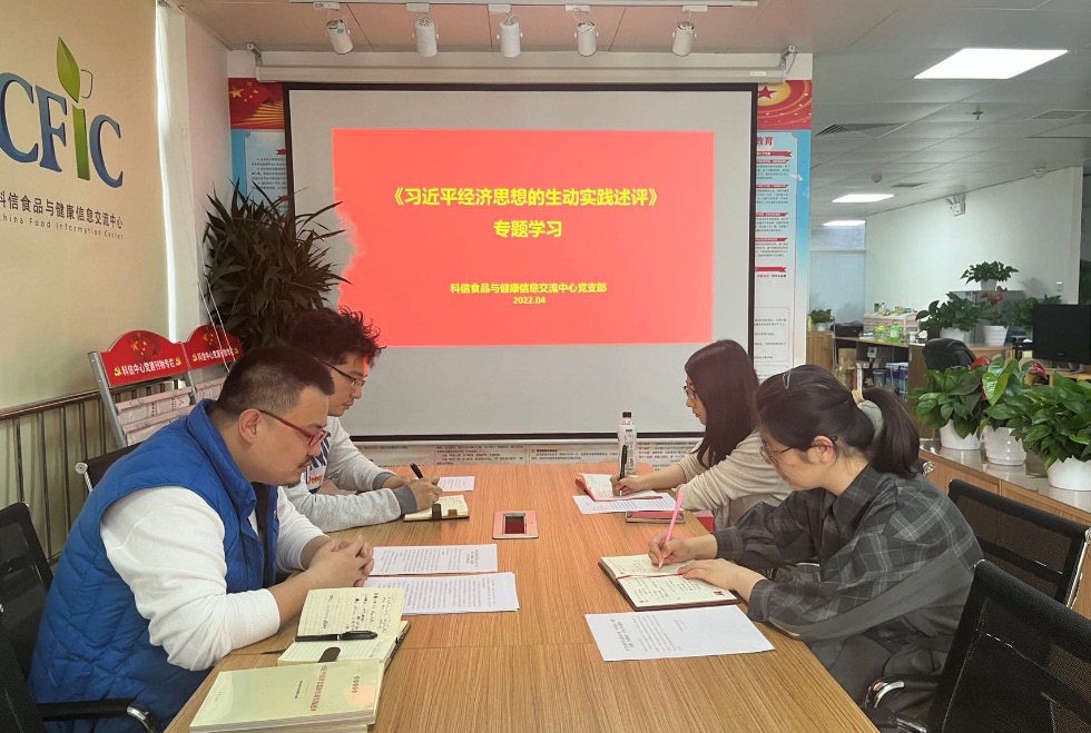 為深入貫徹部管社會組織綜合黨委《關于在部管社會組織開展“學習研討、查擺問題、改進提高”專項工作的通知》要求,扎實開展習近平經濟思想學習踐行活動,引導廣大黨員從業人員堅決捍衛“兩個確立”,不斷增強“四個意識”、堅定“四個自信”、做到“兩個維護”,完整、準確、全面貫徹新發展理念,精準把握社會組織在推動經濟社會發展中的功能定位,更好地發揮“四個服務”作用,科信中心黨支部于 2022 年 4 月 18 日下午組織全體黨員及入黨積極分子學習《習近平經濟思想的生動實踐述評》。