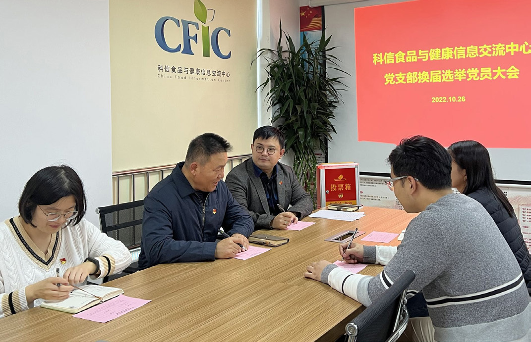 新當選的支部書記、科信中心理事長包大躍同志代表新一屆黨支部負責人作表態發言,并對下一步工作進行安排部署。他在發言中指出,此次換屆工作注重突出形式與內容、思想和業務的緊密結合,使支部的政治核心與戰斗堡壘作用進一步凸顯,支部利用換屆總結工作、梳理成績與不足、挖掘思想根源、明確發展和前進方向,讓整個換屆工作成為教育管理黨員的一堂生動思政實踐課,達到了很好的黨員教育管理效果。同時,他還提出希望全體黨員和新班子在新的起點上,發揚和繼承以往好經驗、好做法的同時,著眼新時代新征程新任務,與時俱進,務實創新,充分發揮戰斗堡壘作用和黨員的模范帶頭作用,團結帶領全體黨員堅定信仰守初心,嚴守紀律講規矩,立足主責主業,注重黨建和業務的深度融合,積極探索黨支部標準化、規范化建設,發揮黨建引領作用,協助政府相關部門在疫情防控、健康中國建設、食品安全社會共治、鄉村振興戰略等方面主動作為,不斷提升黨支部的組織力、戰斗力和凝聚力。