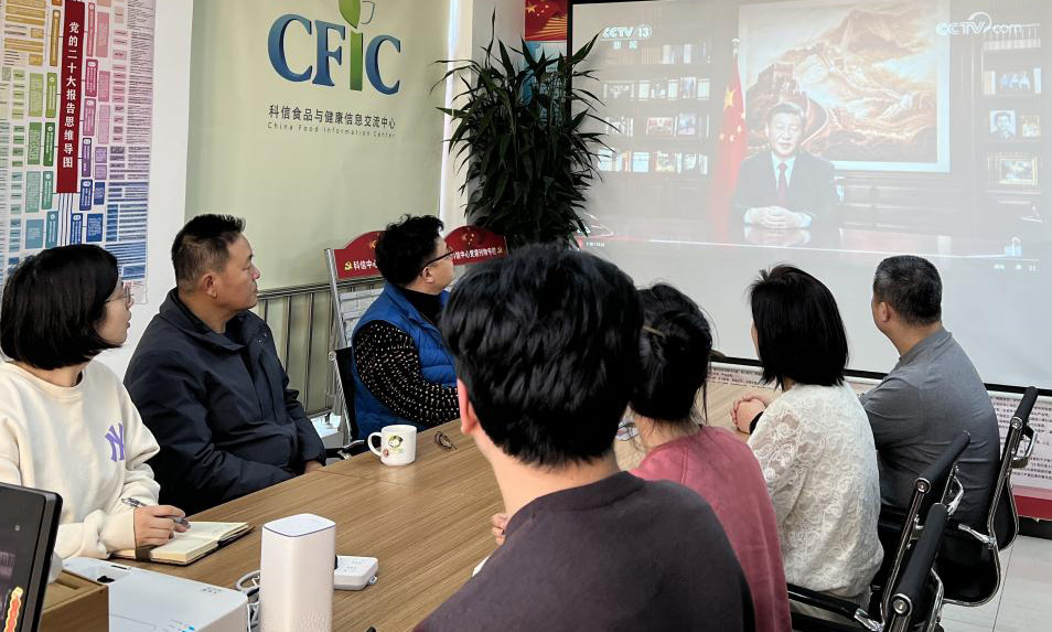 大家也都紛紛表示,習近平主席新年賀詞溫暖人心、充滿力量、令人鼓舞、催人奮進,字字句句飽含著對祖國對人民的深情厚愛,對中國未來發展美好前景的堅定信心以及對全黨全國各族人民的殷切囑托,為我們的工作進一步指明了方向、注入了強大動力,激勵我們擔負時代重任、不忘初心使命,不負韶華、繼續奮斗。我們要用心感悟習近平主席新年賀詞的深刻內涵,將學習賀詞精神與學習黨的二十大精神緊密結合,腳踏實地,埋頭苦干,不負時代,不負華年,更加奮發有為,推動新時代我國食品信息交流工作高質量發展!