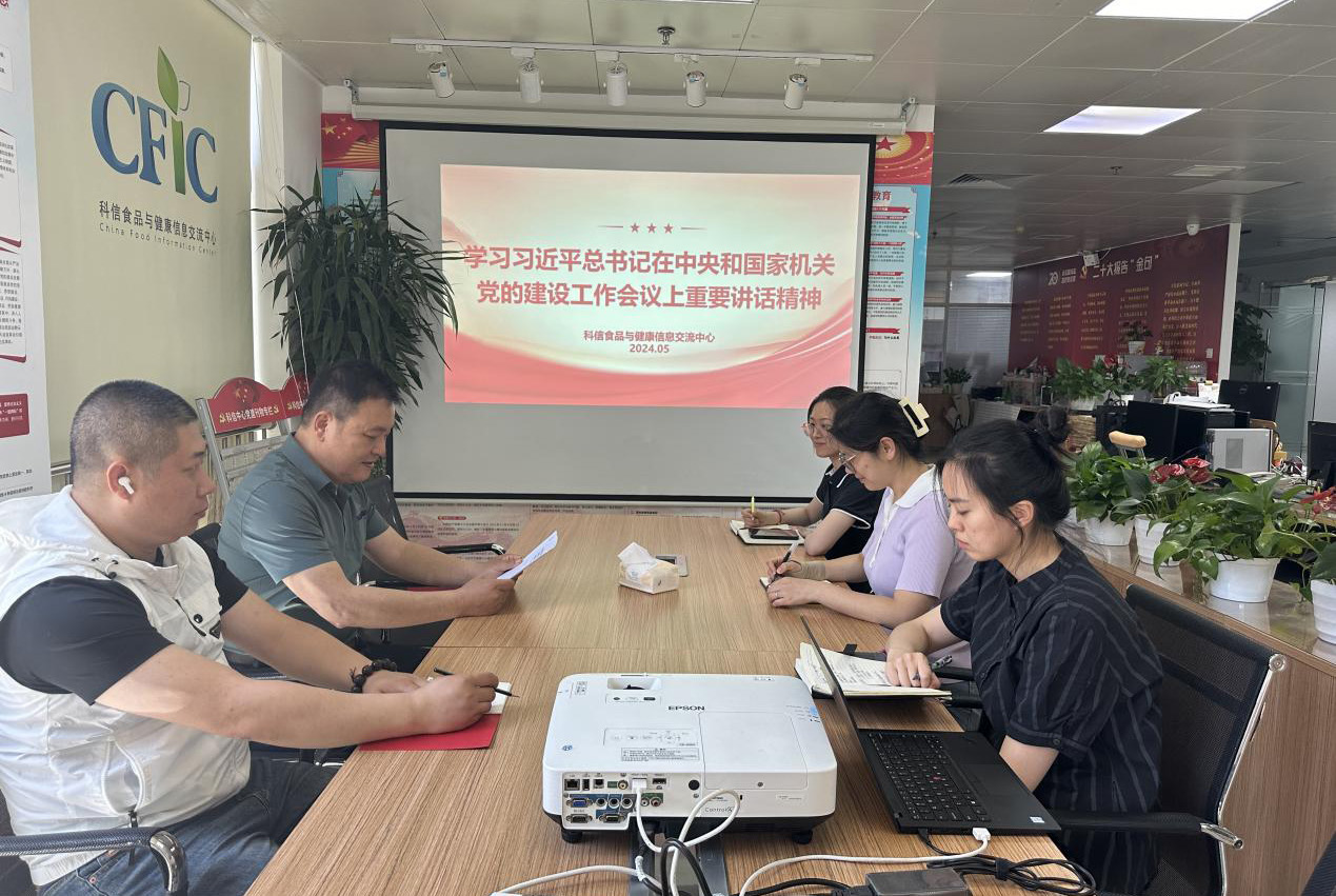 為了落實民政部部管社會組織綜合黨委《關于組織開展習近平總書記在中央和國家機關的黨 的建設工作會議上重要講話精神貫徹落實情況“回頭看”的通知》的要求,科信食品與健康信息 交流中心黨支部于 2024 年 5 月 6 日組織召開了第二季度黨員大會。會議由科信中心黨支部書記 包大躍主持。
