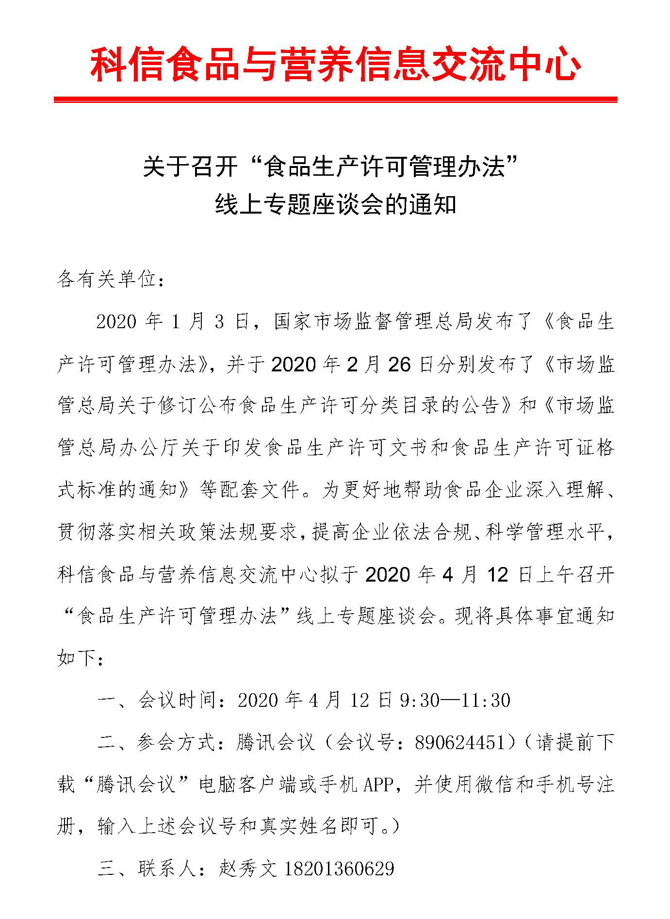 關于召開“食品生產許可管理辦法” 線上專題座談會的通知