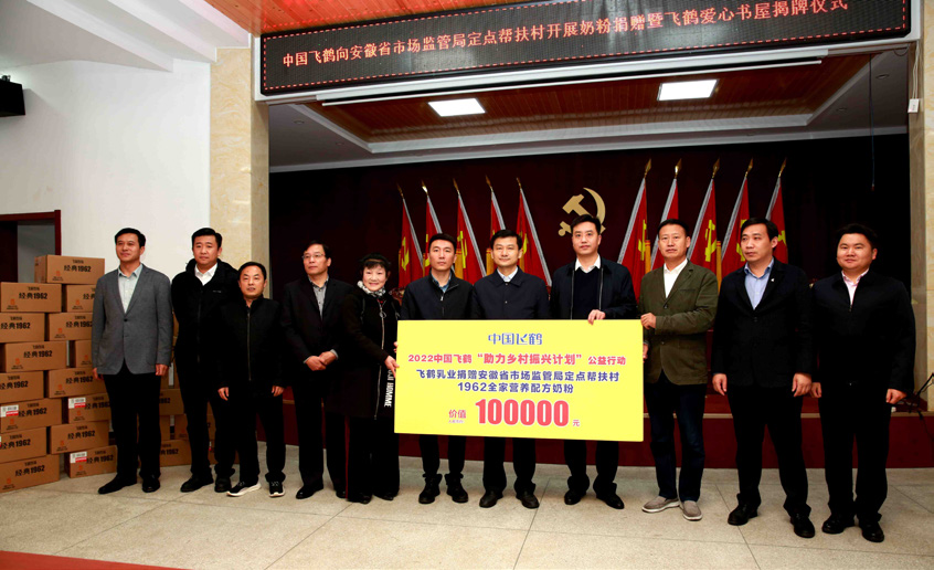 11月22日,中國飛鶴奶粉捐贈暨愛心書屋揭牌儀式在安徽省潛山市官莊村舉行。安徽省市場監管局黨組成員、副局長劉存俊,安徽省...