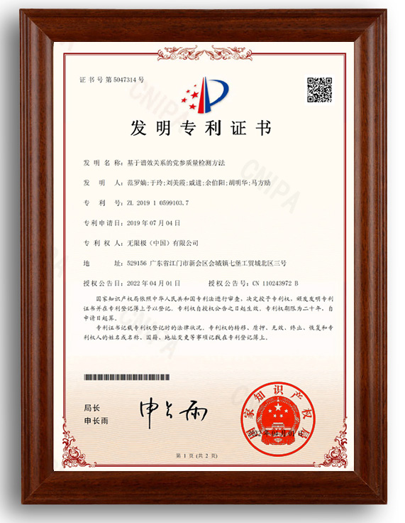 近日,無限極(中國)有限公司申請的發明專利——《基于譜效關系的黨參質量檢測方法》正式通過國家知識產權局審查,并被授予...
