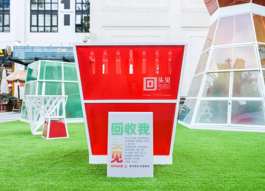 4 月 22 日世界地球日當天,由十萬多個飲料瓶回收再生而成的回收我,回頭見——社區(qū)循環(huán)美學驛站主題展亮相上海市長壽路街...