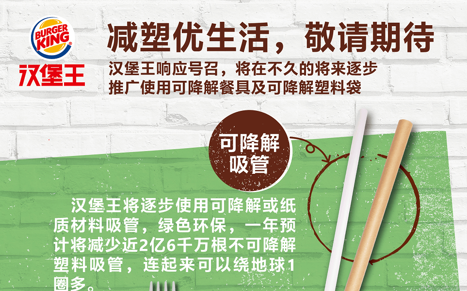 近日,漢堡王宣布正式啟動環(huán)保戰(zhàn)略,除了積極參與環(huán)保公益,還計(jì)劃在不久的將來逐漸用可降解材質(zhì)的環(huán)保餐具替代塑料一次性餐...