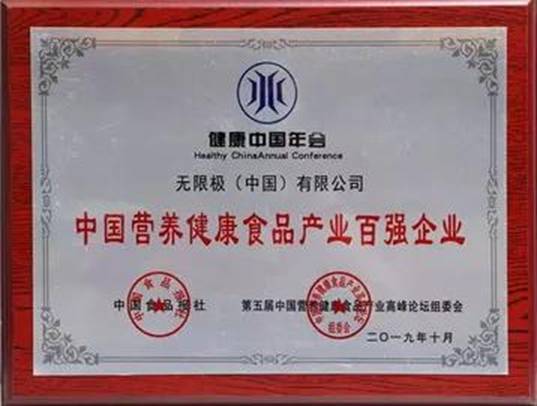 無限極榮獲“中國營養健康食品產業百強企業”和“健康公信力品牌”獎項