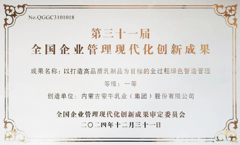 近日,“2025 年全國企業(yè)管理創(chuàng)新大會”在廣東珠海召開,會議發(fā)布和推廣了第三十一屆全國企業(yè)管理現(xiàn)代化創(chuàng)新成果。蒙牛集團...