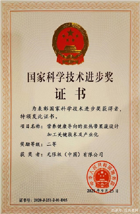 由廣東省農(nóng)業(yè)科學(xué)院蠶業(yè)與農(nóng)產(chǎn)品加工研究所和無限極(中國)有限公司(以下簡稱“無限極”)等合作完成的“營養(yǎng)健康導(dǎo)向的亞熱帶果蔬設(shè)計(jì)加工關(guān)鍵技術(shù)及產(chǎn)業(yè)化”項(xiàng)目榮獲“國家科學(xué)技術(shù)進(jìn)步獎(jiǎng)二等獎(jiǎng)”。李文治博士代表公司在人民大會(huì)堂接受頒獎(jiǎng)。這是無限極繼 2016 年功能油脂技術(shù)獲得國家科學(xué)技術(shù)進(jìn)步二等獎(jiǎng)后,再次獲此殊榮。