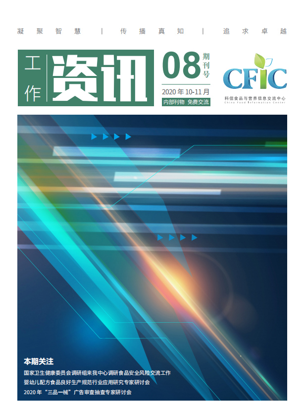 本期關(guān)注:國家衛(wèi)生健康委員會調(diào)研組來我中心調(diào)研食品安全風(fēng)險交流工作,嬰幼兒配方食品良好生產(chǎn)規(guī)范行業(yè)應(yīng)用研究專家研討會,2020 年“三品一械”廣告審查抽查專家研討會...
